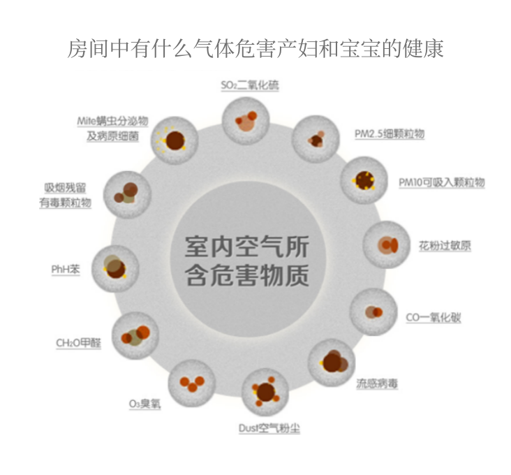 在月子中心内,如果空气中的污染物超标,就会导致妈妈和宝宝出现呼吸困难、咳嗽等症状。此外,一些污染物还可能对妈妈的产后恢复和宝宝的生长发育产生负面影响。空气中的细菌、病毒等微生物可能会导致妈妈和宝宝出现呼吸道感染、皮肤感染等问题。此外,一些有害气体还可能对妈妈和宝宝的肝脏、心脏、肺等器官造成损害。月子中心是一个特殊的环境通常有大量的人员流动,包括产妇、家属、医护人员等等,这些人员的呼吸都可能对空气质量产生影响和交叉感染风险,月子中心通常也需要保持一定的温度和湿度,以提供舒适的环境给产妇和婴儿,如果湿度过高,可能导致霉菌滋生,增加感染的风险。
