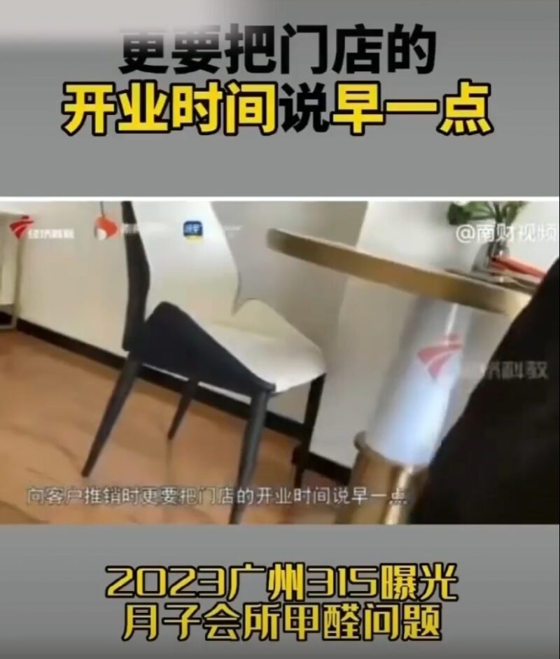 2023年,正值315消费者权益日之时,广东天河区天河汇商业广场5楼的安贝莱月子中心(天河北店)被爆出甲醛问题,店员企图通过隐瞒开业时间,打消客户的甲醛担忧,涉虚假宣传。但该月子中心收费却不菲,入住28天就要花掉3万元。